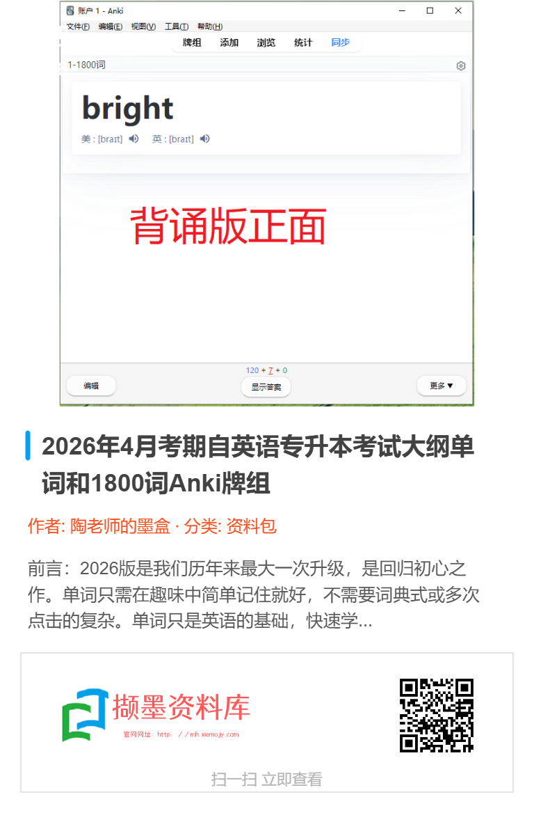 1. 使用全新2026版数据,单词与原书一致,《1800词》1844个,《考试大纲单词》4500词左右;